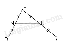 Vì \(M\) là trung điểm của \(AB\), \(N\) là trung điểm của \(AC\) nên \(MN\) là đường trung bình của tam giác \(ABC\)\( \Rightarrow \left\{ \begin{array}{l}MN//BC\\MN = \frac{1}{2}BC\end{array} \right.\).