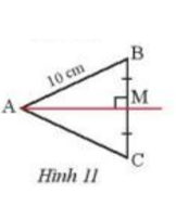 Quan sát Hình 11, cho biết M là trung điểm của BC, AM vuông góc với BC và AB = 10 cm, Tính AC.