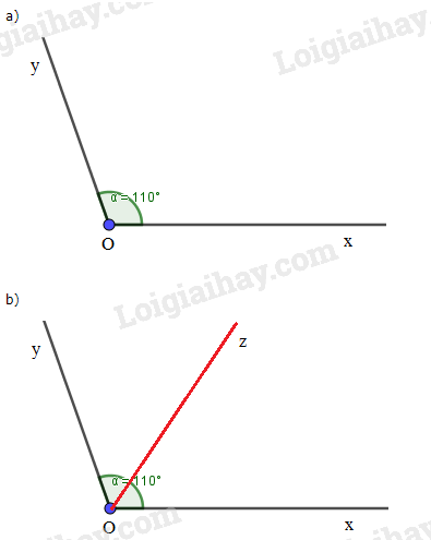 a) Vẽ \(\widehat {xOy}\) có số đo là 110\(^\circ \).