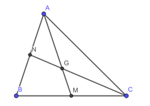 Mà \(CG + GN = CN\) nên ta có \(GN = CN – CG = CN – \dfrac{2}{3}CN = \dfrac{1}{3}CN\)