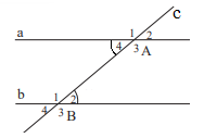 Vì đường thẳng c cắt hai đường thẳng a và b tạo thành một cặp góc so le trong ( góc A4 và B3) bằng nhau nên a // b ( Dấu hiệu nhận biết 2 đường thẳng song song)