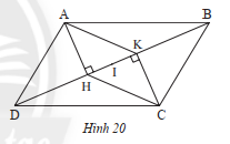 Cho hình bình hành \(ABCD\), kẻ \(AH\) vuông góc với \(BD\) tại \(H\)\(CK\) vuông góc với \(BD\) tại \(K\) (Hình 20)