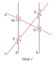 +) \(\widehat {{M_1}} = \widehat {{N_1}};\widehat {{M_2}} = \widehat {{N_2}};\widehat {{E_1}} = \widehat {{F_1}};\widehat {{E_2}} = \widehat {{F_2}}\) (các góc so le trong)