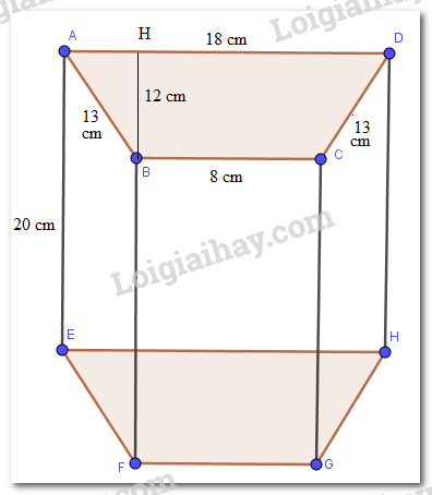 b) Cho một hình lăng trụ đứng có độ dài cạnh bên là 20 cm và đáy là một hình thang cân. Biết hình thang cân đó có độ dài cạnh bên là 13 cm, độ dài hai đáy lần lượt là 8 cm, 18 cm và chiều cao là 12 cm. Tính diện tích toàn phần ( tức là tổng diện tích các mặt) của hình lăng trụ đứng đã cho.