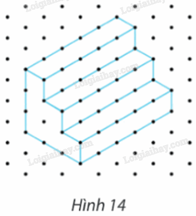 Lập bản vẽ kĩ thuật trên khổ giấy A4 gồm ba hình chiếu và các kích thước của cái bục gỗ có hình chiếu trục đo như Hình 14. Cho biết khoảng cách giữa hai chấm biểu diễn độ dài 20 cm.
