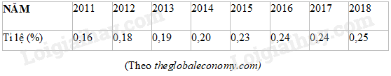 Bảng thống kê sau cho biết tỉ lệ đóng góp vào GDP toàn cầu của Việt Nam trong một số năm.