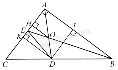 Cho tam giác \(ABC\) vuông tại \(A\) có \(AB = 8\) cm, \(AC = 6\) cm, có hai đường phân giác \(AD,BE\) cắt nhau tại \(O\). Tính :