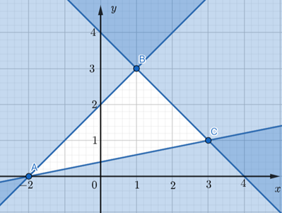 Miền nghiệm của hệ bất phương trình là miền tam giác ABC (kể cả các cạnh) với