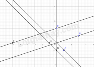 Đồ thị của hàm số \(y = \frac{1}{3}x + 2\) là đường thẳng đi qua hai điểm \(E\left( {0;2} \right)\) và \(F\left( { – 6;0} \right)\).