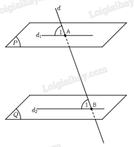 Trên hình vẽ, góc giữa \(d\) và \({d_1}\) là góc \(\widehat {{A_1}}\), góc giữa \(d\) và \({d_2}\) là góc \(\widehat {{B_1}}\). Do \({d_1}\parallel {d_2}\) nên ta có \(\widehat {{A_1}} = \widehat {{B_1}}\). Suy ra góc giữa \(d\) và \(\left( Q \right)\), cũng là góc giữa \(d\) và \({d_2}\) chính là góc giữa \(d\) và \(\left( P \right)\) và bằng \(\varphi \).