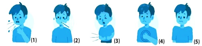 Quan sát các hình sau. a) Hình (1), (2), (3), (4), (5) là một số biểu hiện bệnh do vi khuẩn. Hãy kể tên các biểu hiện trên. b) Biểu hiện thường gặp ở người bị bệnh lao phổi gồm: