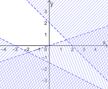 Biểu diễn miền nghiệm của từng bpt và gạch bỏ các miền không là nghiệm, ta được: