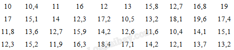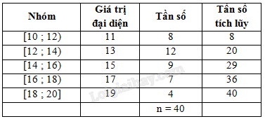 a) Lập bảng tần số ghép nhóm bao gồm cả tần số tích lũy có năm nhóm ứng với năm nửa khoảng: [10 ; 12), [12 ; 14), (14 ; 16), [16 ; 18), [18 ; 20).