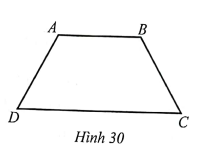 Cho hình thang cân ABCD với độ dài cạnh đáy AB = 6 cm. Trung bình cộng của hai đáy bằng 9 cm. Độ dài cạnh bên kém độ dài cạnh đáy CD là 7 cm (Hình 30). Tính chu vi của hình thang cân ABCD.