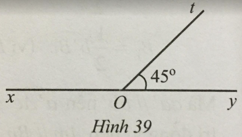 \(\begin{array}{l}\widehat {xOt} + \widehat {yOt} = \widehat {xOy} \to \widehat {xOt} + 45^\circ  = 180^\circ \\ \Rightarrow \widehat {xOt} = 180^\circ  – 45^\circ  = 135^\circ \end{array}\)