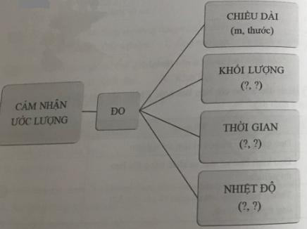 Tìm đơn vị đo thích hợp với các vị trí dấu (?) trong sơ đồ sau đây.