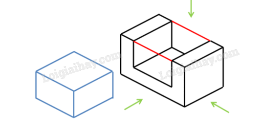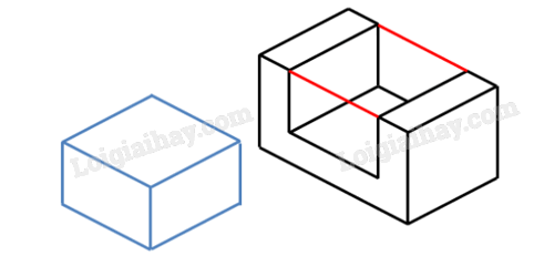Bước 3: Lần lượt vẽ hình chiếu vuông góc của hình hộp chữ nhật bao bên ngoài vật thể, của khối chữ U và của rãnh hộp chữ nhật.
