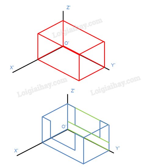 Bước 5: Vẽ hình chiếu trục đo vuông góc đều của vật thể.