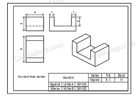 Bước 6: Kẻ khung bản vẽ, khung tên, ghi các nội dung vào khung tên để hoàn thành bản vẽ.
