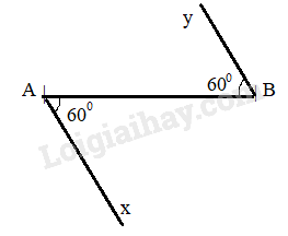 Cho đoạn thẳng AB. Vẽ hai tia Ax, By sao cho chúng tạo với AB hai góc so le trong có cùng số đo bằng 60\(^\circ \)(\(\widehat {xAB} = \widehat {yBA} = 60^\circ \)). Trên hình vừa vẽ, hai đường thẳng chứa hai tia Ax và By có song song với nhau không? Vì sao?