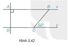 Cho Hình 3.42, biết rằng Ax//Dy, \(\widehat A = 90^\circ ,\widehat {BCy} = 50^\circ \). Tính số đo các góc ADC và ABC.