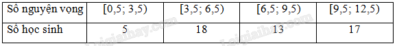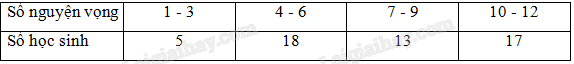 Số nguyện vọng đăng kí vào đại học của các bạn trong lớp được thống kê trong bảng sau: