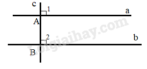 Ta có: \(\widehat {{A_1}} = \widehat {{B_2}}(=90^0)\), mà hai góc này ở vị trí đồng vị nên a//b  (Dấu hiệu nhận biết 2 đường thẳng song song)