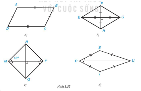 Tìm hình thoi và hình vuông trong Hình 3.55.