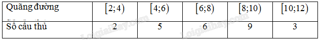 Quãng đường (km) các cầu thủ (không tính thủ môn) chạy trong một trận đấu bóng đá tại giải ngoại hạng Anh được cho trong bảng thống sau: