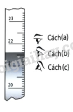 Khi dùng bình chia độ để đo thể tích chất lỏng, bạn Nguyên đặt mắt để quan sát và đọc số đo theo 3 cách như trong hình bên. Theo em, bạn Nguyên đặt mắt quan sát theo cách nào là đúng? A. Cách (a)