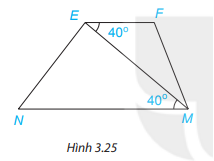 Quan sát Hình 3.25. Biết \(\widehat {MEF} = 40^\circ ;\widehat {EMN} = 40^\circ \). Em hãy giải thích tại sao EF // NM.