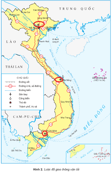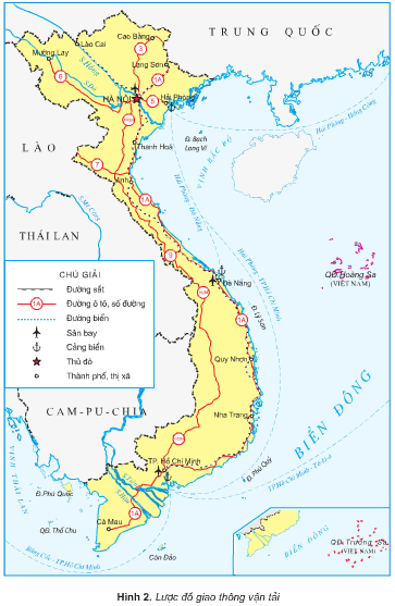 – Sân bay quốc tế (khoanh tròn màu đỏ trong hình): Nội Bài (Hà Nội), Tân Sơn Nhất (TP.Hồ Chí Minh), Đà Nẵng.