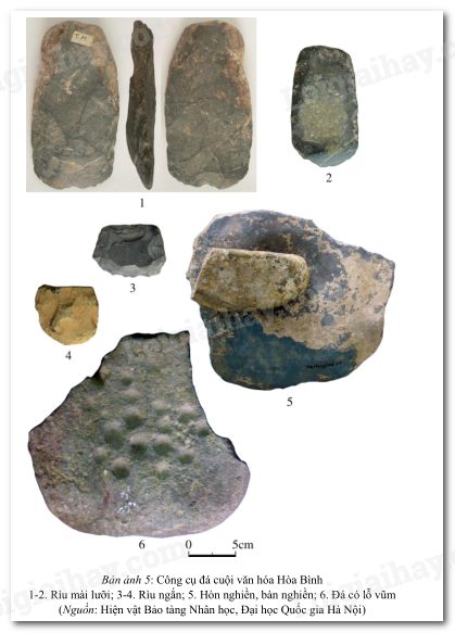 – Di tích cư trú, chế tác công cụ ở núi Đọ, núi Nuông, Quan Yên (Thanh Hóa), Suối Đá, Gia Tân (Đồng Nai)…  Một số loại mảnh tước, công cụ chặt thô, công cụ mũi nhọn… bằng đá gốc Bazan có dấu vết sử dụng của người tiền sử trong việc săn bắt, xẻ thịt hoặc trong chiến đấu. Các động tác thường được thực hiện là: chém, đâm, cắt, chặt, ném, nạo, gọt… Việc biết sử dụng công cụ có cạnh sắc, mũi nhọn cho thấy người tiền sử đã vượt ra khỏi cuộc sống động vật. Công cụ đá dần được ghè đẽo, gia công, tu chỉnh ngày càng sắc bén.