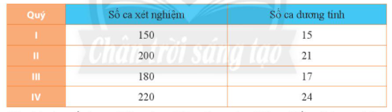Tổng hợp kết quả xét nghiệm bệnh viêm gan ở một phòng khám trong một năm ta được bảng sau: Hãy tính xác suất thực nghiệm của sự kiện một ca xét nghiệm có kết quả dương tính a) theo từng quý trong năm. b) sau lần lượt tổng quý tính từ đầu năm.