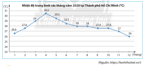 + Biểu đồ biểu diễn nhiệt độ trung bình các tháng năm 2020 tại Thành phố Hồ Chí Minh.