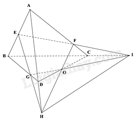 Cho tứ diện ABCD. Gọi E, F, G lần lượt là các điểm thuộc ba cạnh AB, AC, BD sao cho EF cắt BC tại I, AD cắt EG tại H. Chứng minh rằng ba đường thẳng CD, IG, HF cùng đi qua một điểm.