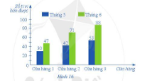 Biểu đồ ở Hình 16 thống kê số lượng ti vi bán được của ba cửa hàng trong tháng 5 và tháng 6 của năm 2018.