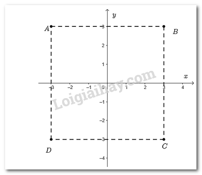 Vẽ một hệ trục tọa độ (Oxy) và đánh dấu các điểm (Aleft( { – 3;3} right);Bleft( {3;3} right);Cleft( {3; – 3} right);Dleft( { – 3; – 3} right)). Nêu nhận xét về các cạnh và góc của tứ giác ABCD.