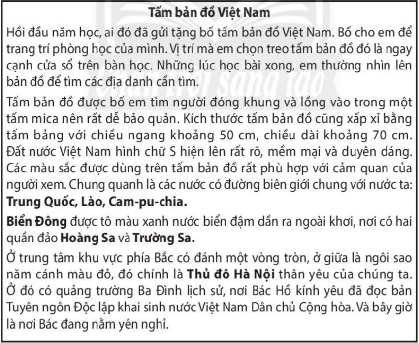 Hãy đọc bài văn mô tả về tấm bản đồ Việt Nam và hãy cùng hình dung về những điều tác giả viết về đất nước của chúng ta trong từng câu văn.