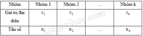 a) Ta có bảng số liệu bao gồm giá trị đại diện: