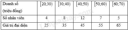 Bảng sau thống kê doanh số bán hàng của các nhân viên một trung tâm thương mại trong một ngày.