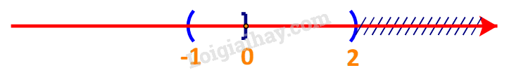 b) Đặt \(B = ( – \infty ;0] \cup ( – 1;2)\)