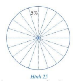 b)     Hãy hoàn thiện biểu đồ ở Hình 25 để nhận được biểu đồ hình quạt tròn biểu diễn các dữ liệu thống kê trên. Biết rằng ở Hình 25 hình tròn đã được chia sẵn thành các hình quạt, mỗi hình quạt ứng với 5%.