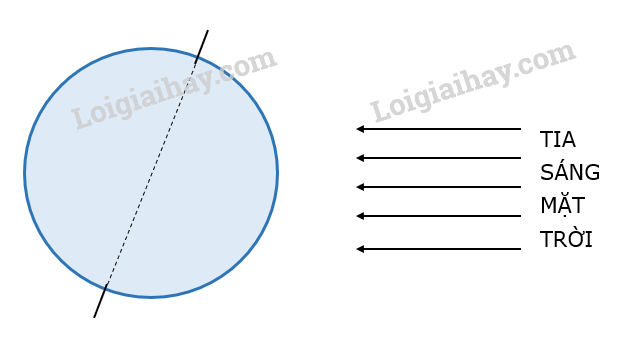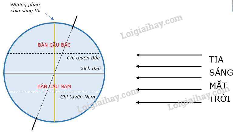 Em hãy hoàn thành sơ đồ theo mẫu sau để thể hiện vị trí của Trái Đất vào ngày 22 tháng 6, bằng cách thêm: đường phân chia sasng tối, Xích đạo, chí tuyến Bắc, chí tuyến Nam và chú thích bán cầu Bắc, bán cầu Nam.