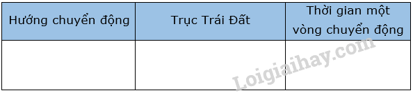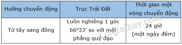 – Thời gian Trái Đất quay một vòng quanh trục là khoảng 24 giờ (một ngày đêm).