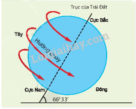 – Trái Đất quay qanh một trục tưởng tượng. Trục này nối liền hai cực của Trái Đất và nghiêng 1 góc 66o33’ trên mặt phẳng quỹ đạo.