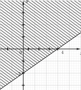 Miền nghiệm của bất phương trình \(x – 2y < 4\) được xác định bởi miền nào (nửa mặt phẳng không bị gạch và không kể d) sau đây?