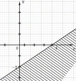 • Lấy điểm \(O\left( {0;0} \right)\). Ta có: \(0 – 2.0 = 0 < 4\)(luôn đúng)