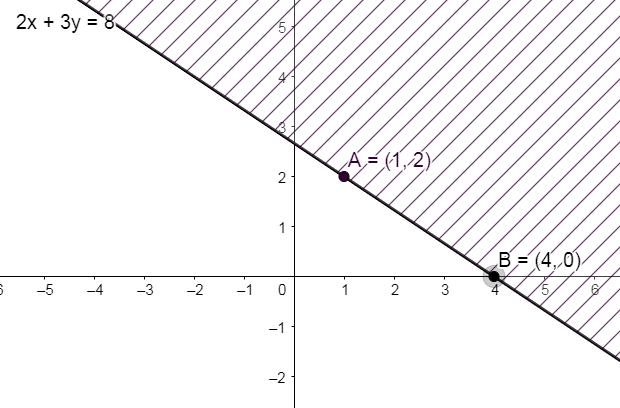 a) \(3x + 2y < x – y + 8 \Leftrightarrow 2x + 3y – 8 < 0\)