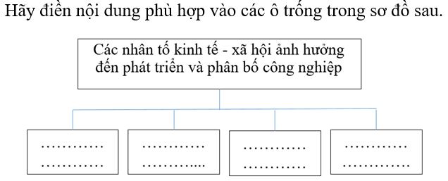 Giải bài 3 trang 30 vở bài tập Địa lí 9, Hãy điền nội dung phù hợp vào các ô trống trong sơ đồ sau.